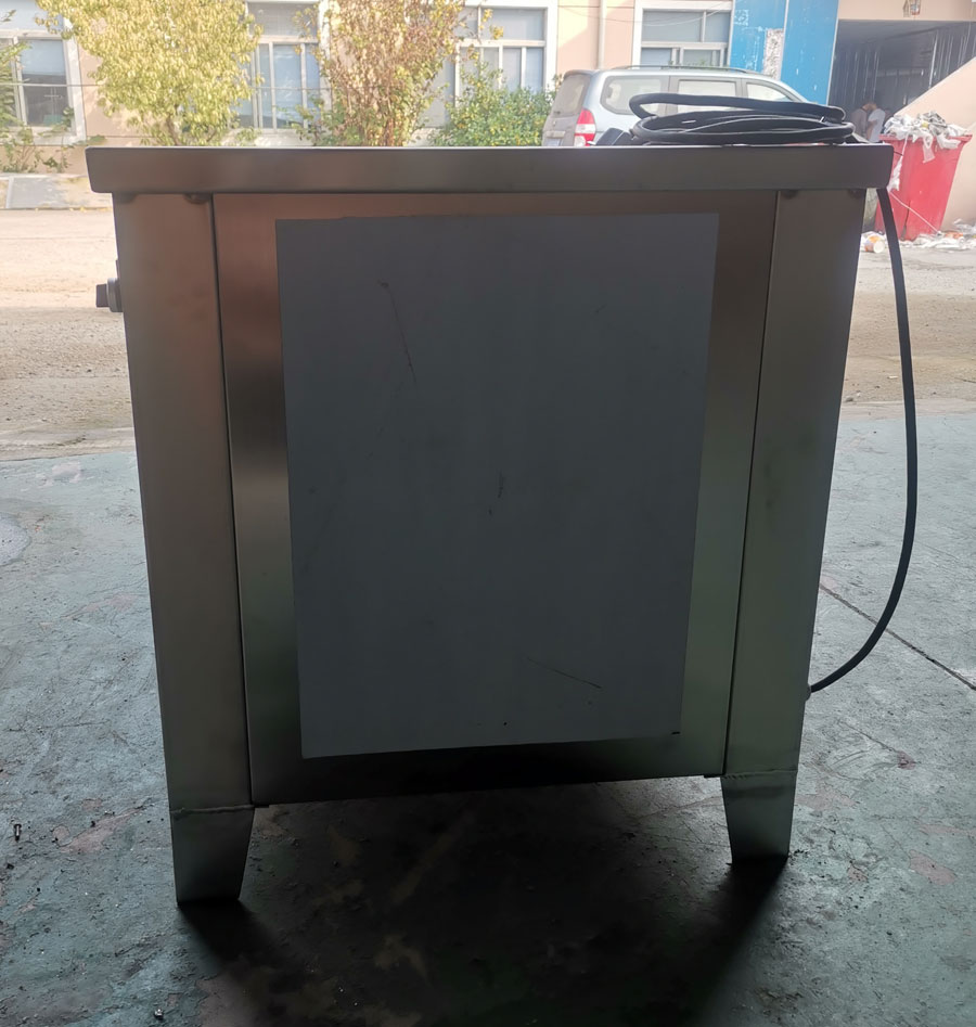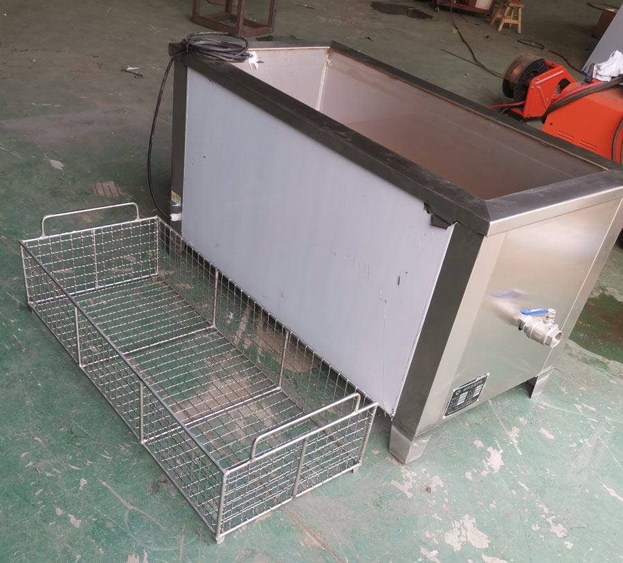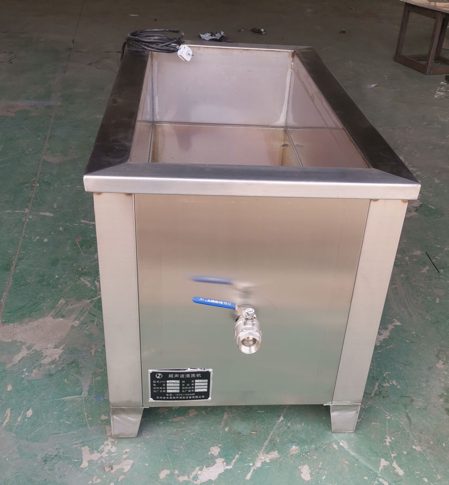 内槽尺寸: 1100* 500*300mm 工装篮尺寸: .1050*450*300mm 超声频率: 25KHZ 不带加热介质为酒精 电压: 380V 底振配发生器1台 个量: 55头*60W=3300W