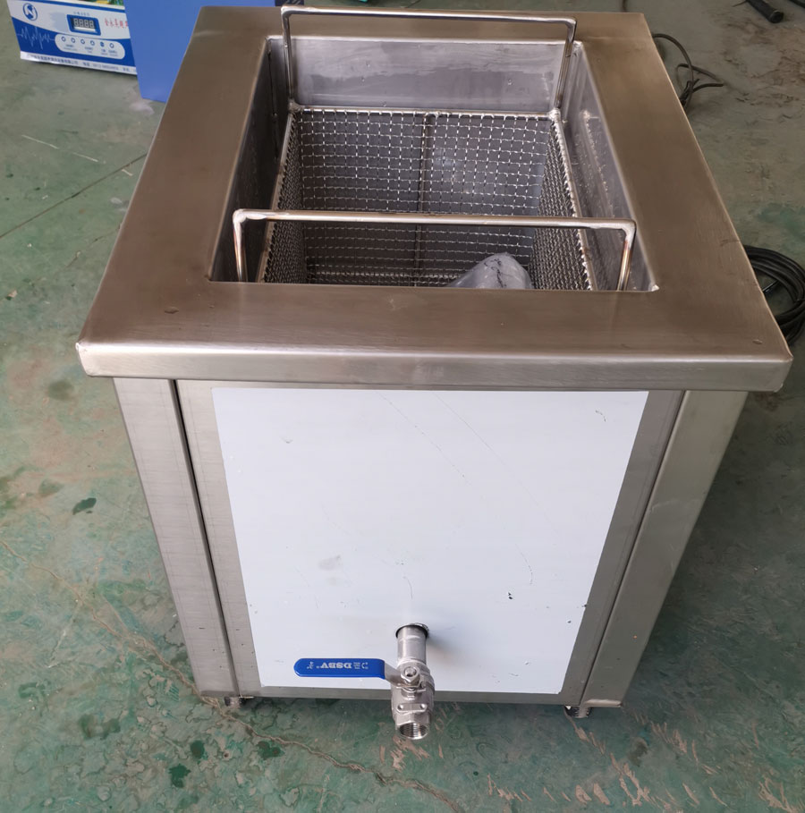 内槽尺寸: 450*320*300mm 工装篮尺寸: 400*280* 200mm 超声频率: 25KHZ 带加热加热功率3000W 电压: 220V 底振配发生器1台 个量: 12头*60W=720W