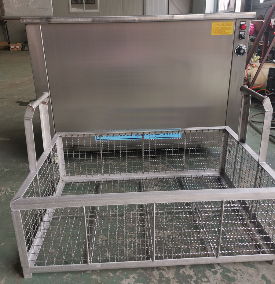 内槽尺寸: 1000*700*600mm 带加热加热功率9000W 超声频率: 28KHZ 电压: 380V 三面振 配发生器1台 个数: 90头*60W= 5400W