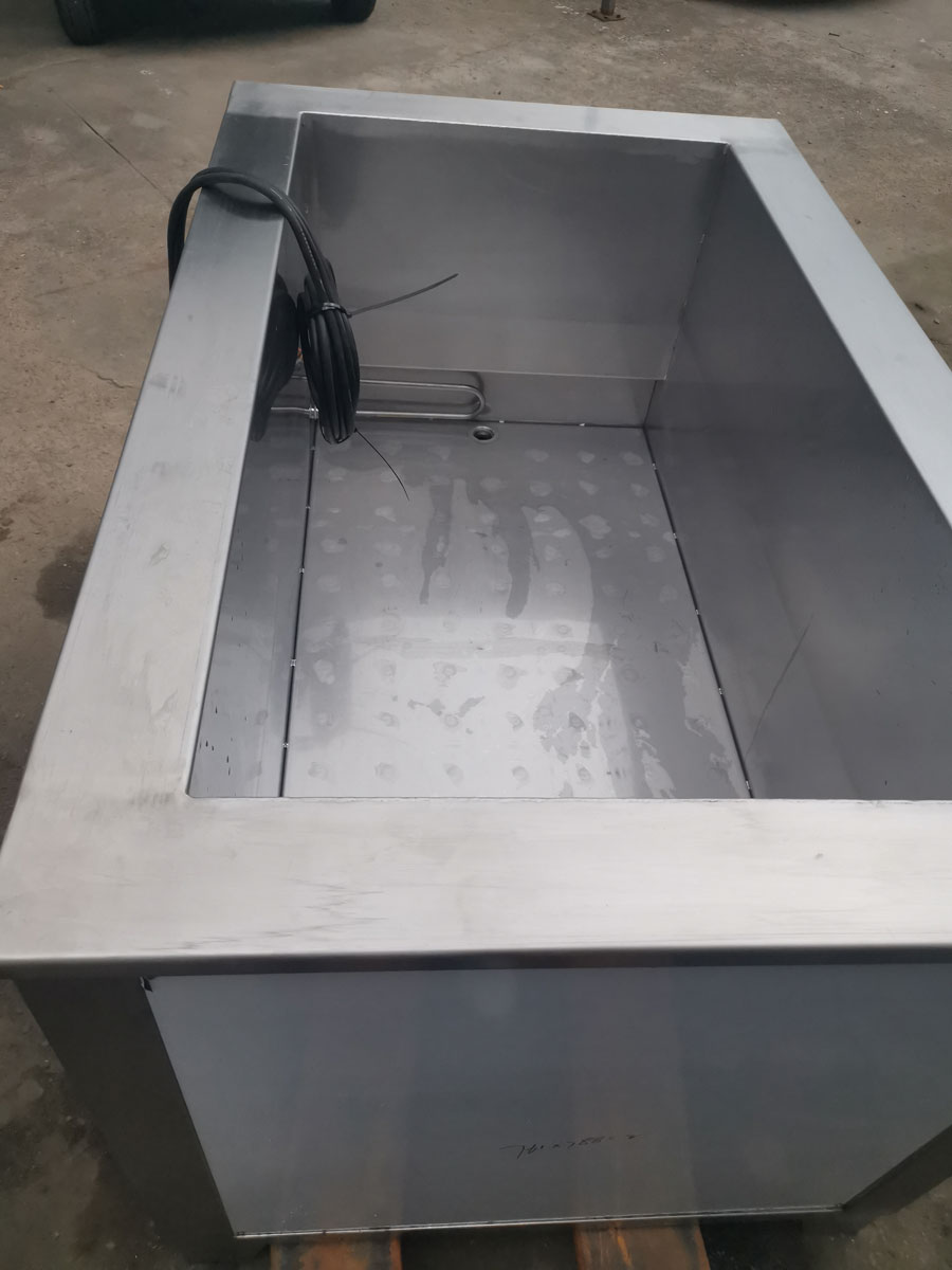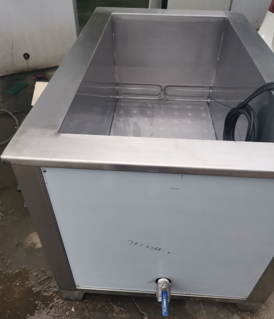 内槽尺寸: 1000*700*600mm 带加热加热功率9000W 超声频率: 28KHZ 电压: 380V 三面振 配发生器1台 个数: 90头*60W=5400W