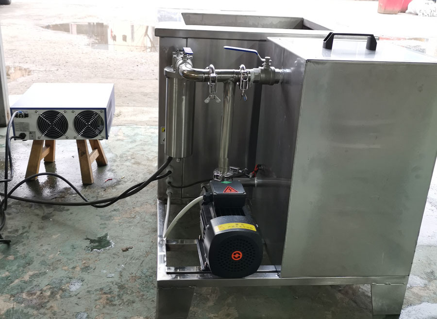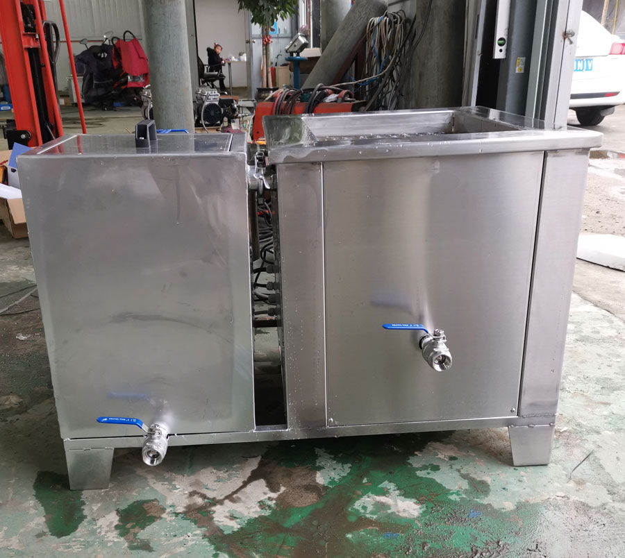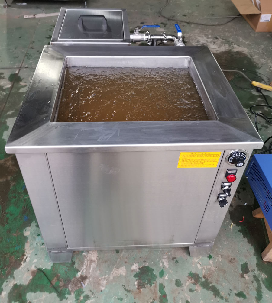 内槽尺寸: 500*400*300mm 工装篮尺寸: 450*350*250mm 带加热加热功率3000W 超声频率: 28KHZ 电压: 200V 底振配发生器1台 个数: 20头*60W=1200W